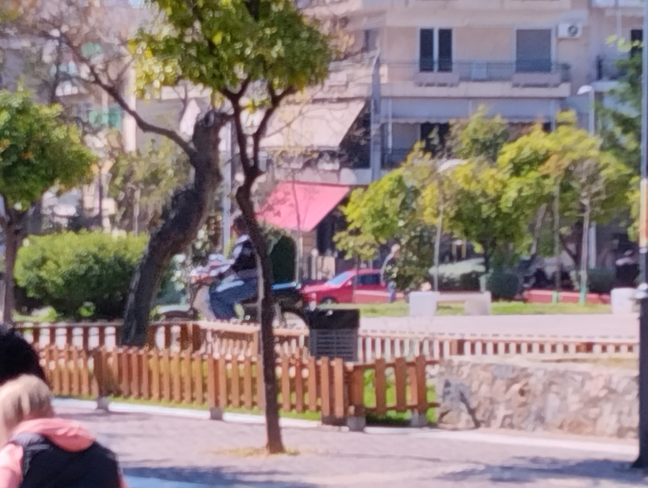 Από το πρωί , έκπληκτοι οι επισκεπτόμενοι την πλατεία ή οι θαμώνες των καφέ που έχουν τραπεζάκια επί της πλατείας , βλέπουν το ένα μετά το άλλο μηχανάκια να ανεβαίνουν σ΄αυτήν και να τη διασχίζουν σ΄όλο το πλάτος της , λες και είναι δρόμος.