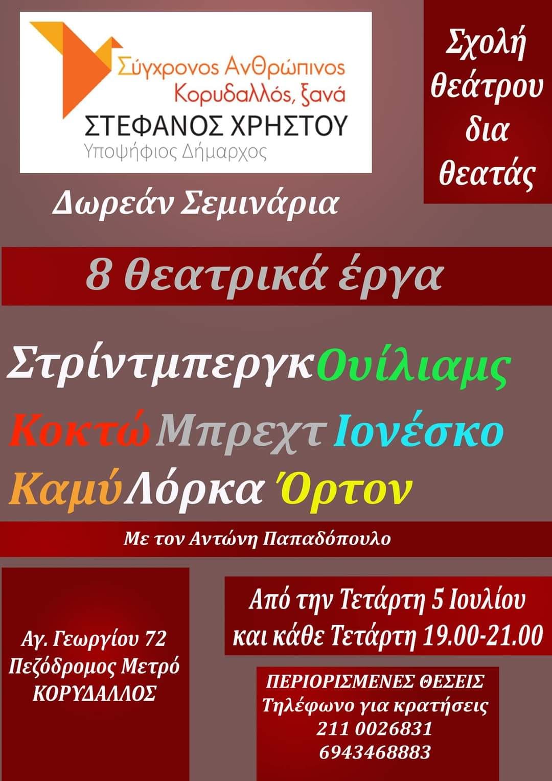 〽️Τα σεμινάρια και η σχολή θεάτρου θα είναι ΔΩΡΕΑΝ για ενήλικες που θέλουν να μάθουν πώς “παρακολουθούμε” το θέατρο!