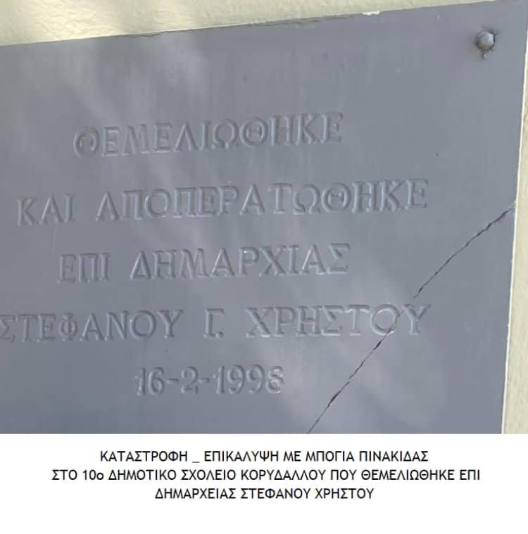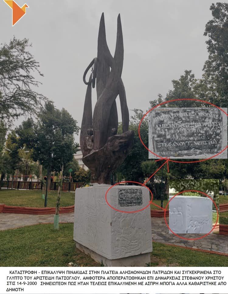 Δυστυχώς, στον δήμο μας γινόμαστε μάρτυρες και ενός άλλου αντιδημοκρατικού και αντιιστορικού γεγονότος. Οι κκ. Χουρσαλάς και Δημόπουλος κατεβάζουν από σχολεία, κτήρια, αλλά και αγάλματα τις πινακίδες που καταδείχνουν πότε έγιναν αυτά τα έργα, από ποιον Δήμαρχο και ποια Δημοτική Αρχή.